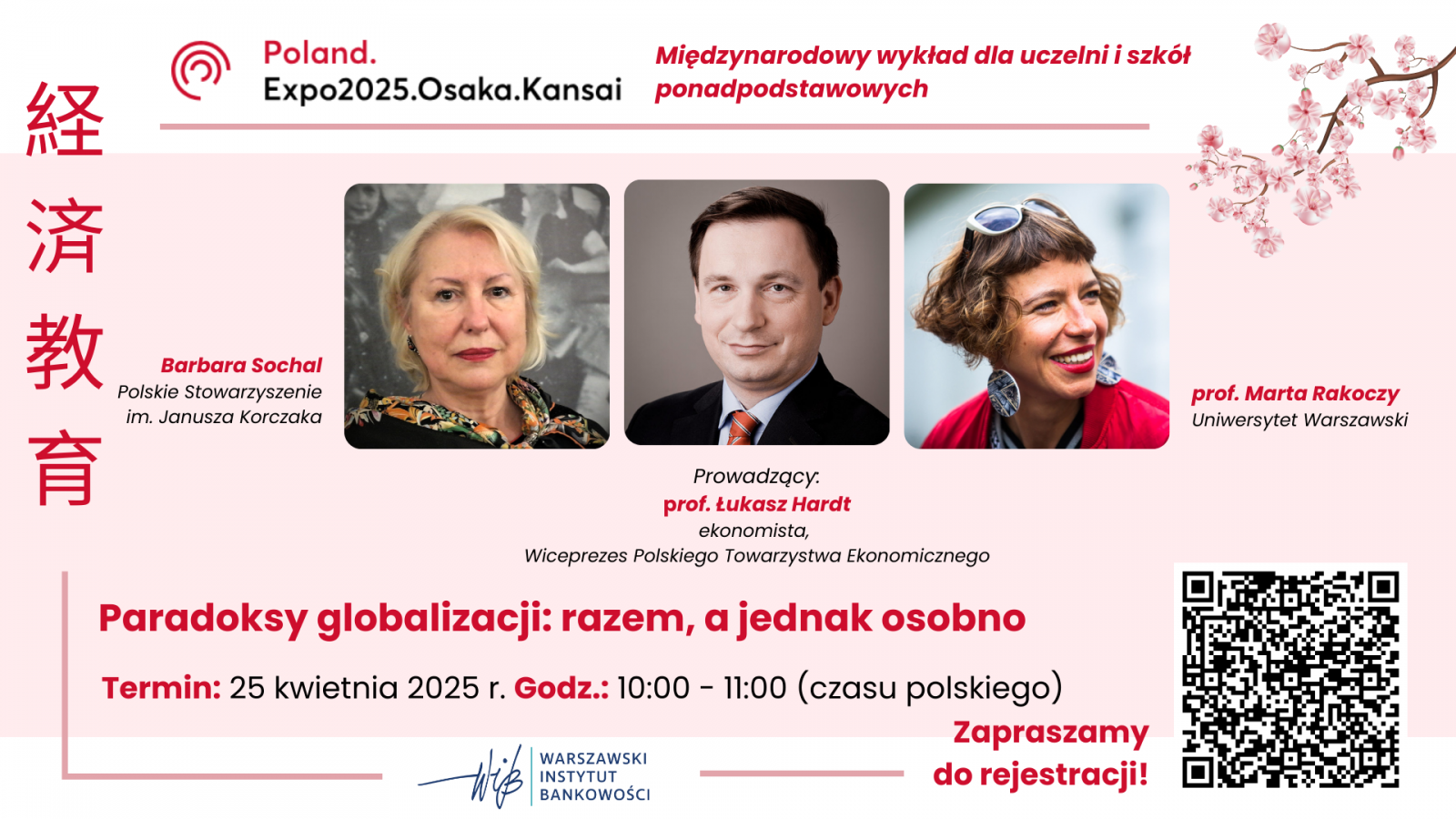 Partner WSG Warszawski Instytut Bankowości zaprasza do udziału w międzynarodowym wykładzie online, który będzie prowadzony w języku polskim, prosto z Polskiego Pawilonu na Światowej Wystawie EXPO 2025 w Osace. Wydarzenie odbędzie się w ramach Tygodnia Polskiej Nauki i Edukacji.
